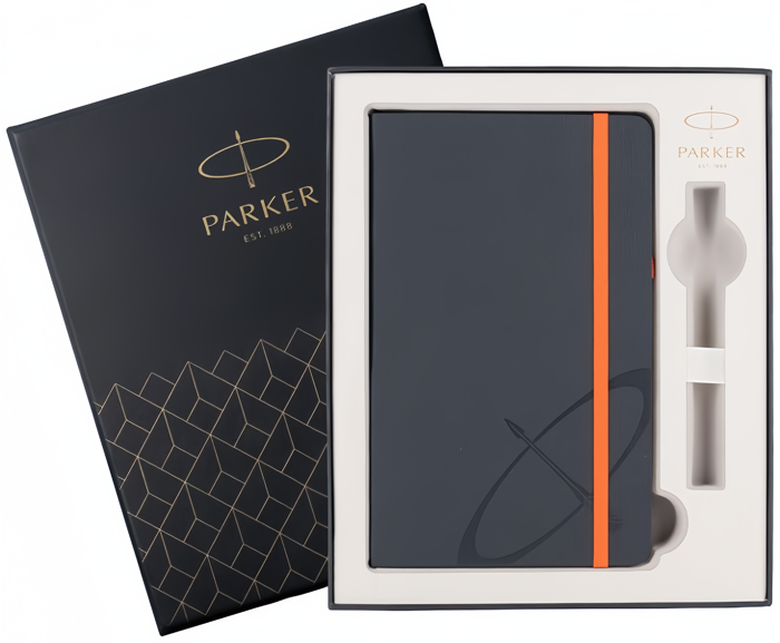 Подарочная коробка Parker с блокнотом от официального дилера Parker в Майкопе. Вы можете дополнительно заказать гравировку, которая подчеркнет Вашу оригинальность и придаст памятность статусному подарку. Все ручки Паркер поставляются в фирменном футляре.